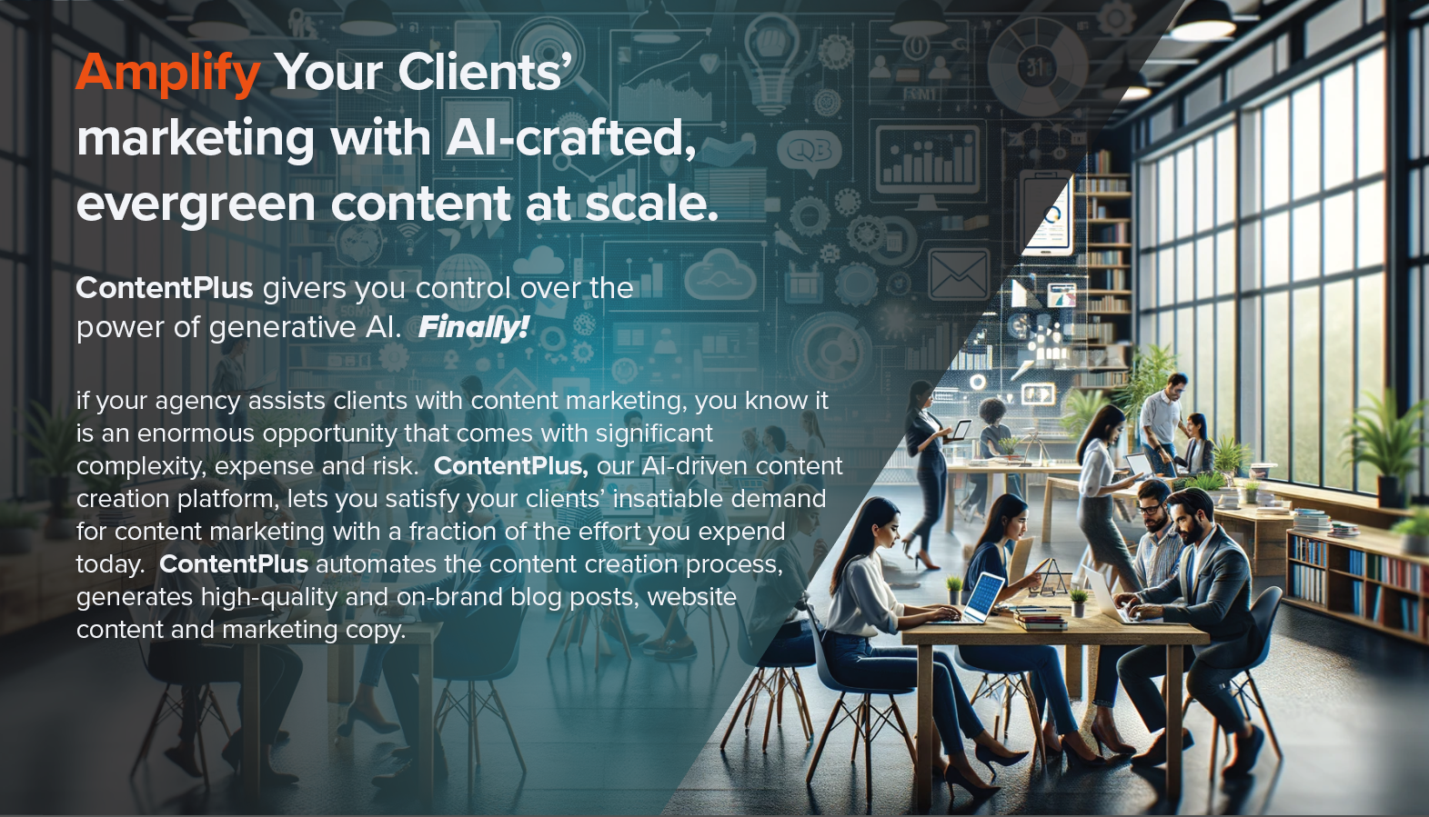ContentPlus is ideal for mid-market agencies looking to reduce employee/contractor writer-spend on multiple accounts. Particularly those in competitive geos where unique, high-quality content is essential for engagement and SEO.