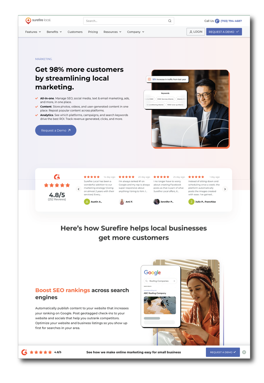 c2b Suite recommended that Surefire Local turn to ContentPlus, c2b’s Generative AI solution, to create relevant and persuasive marketing content for its clients. ContentPlus is designed for high-volume content production - in excess of 500 blogs and 40+ new websites per month – creating web-ready “content with context”. Content relevance and accuracy are ensured through ContentPlus’ reusable prompts standardized for vertical industries.